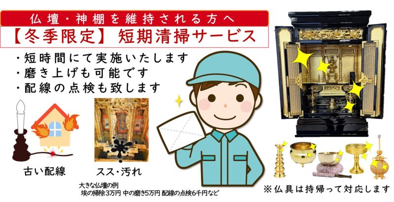 雪の多い冬季限定にいて、お客様のお宅におうかがいし、その場にて仏壇を清掃する短時間サービスを開始しました。